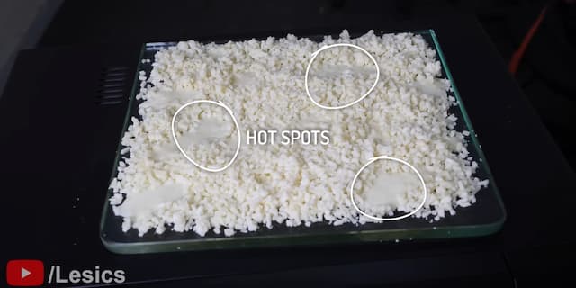 チーズを使って、キッチンの電子レンジのこれらの冷たい部分と熱い部分を実証することができます。