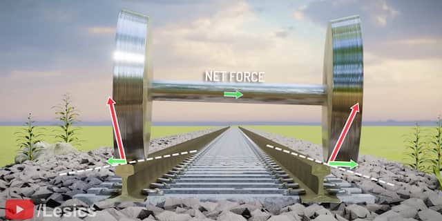 車輪がレールの中心にある場合、これらの力の水平成分は互いに打ち消されます。